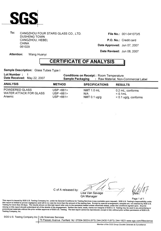 ISO國際標(biāo)準(zhǔn),玻璃管顆粒法耐水I級(jí)為耗酸量小于1ML,國際同行業(yè)的數(shù)值是0.35ML,而我們是0.2ML(數(shù)值越小質(zhì)量越好),此項(xiàng)技術(shù)已經(jīng)獲得了美國權(quán)威檢測(cè)機(jī)構(gòu)SGS的檢測(cè)證書,此產(chǎn)品已經(jīng)達(dá)到國際先進(jìn)水平。