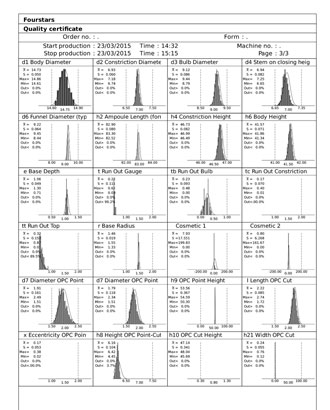 我們的安瓶生產(chǎn)采用的是意大利奧克米公司新型的、同時(shí)也是世界上先進(jìn)的(FA36S型)36個(gè)工位的生產(chǎn)機(jī)型,生產(chǎn)線安裝有自動上管裝置,同時(shí)帶有在線印刷裝置、打點(diǎn)刻痕裝置及色環(huán)裝置,可生產(chǎn)各種不同色環(huán)的安瓶、雙色環(huán)、三色環(huán)及易折環(huán)等安瓶,分別可生產(chǎn)B、C、D型瓶。